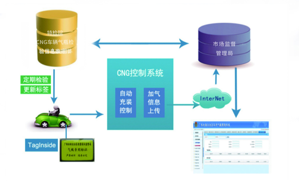 车辆经过合法改装后,通过本系统进行快速的注册登记,建立人、车、瓶的档案,通过本系统打印车用气瓶使用登记证,并核发车用气瓶电子标签。