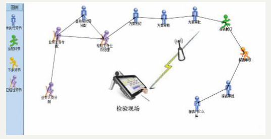 把整个业务流程整合到一个统一的流程 中,从报检、受理、制订方案到生成报告完全在一个流程中。 这样就可以有效的对每一台设备进行有效的监管和控制,可以查询到每一台设备所在的环节、办理人、办理意见、办理时间。